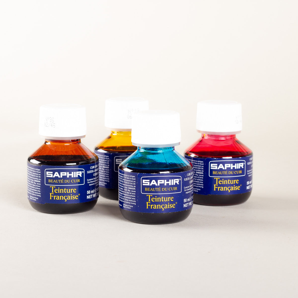 - Schoenen kleuren middels schoenverf: Je kan schoenen ook kleuren middels schoenverf. Dit is zodra aangebracht permanent. Als je je schoenen in een andere kleur wilt verven doe je dit middels schoenverf zoals Teinture Francaise van Saphir. Lees ook onze volledige gids over hoe je leren schoenen verft.