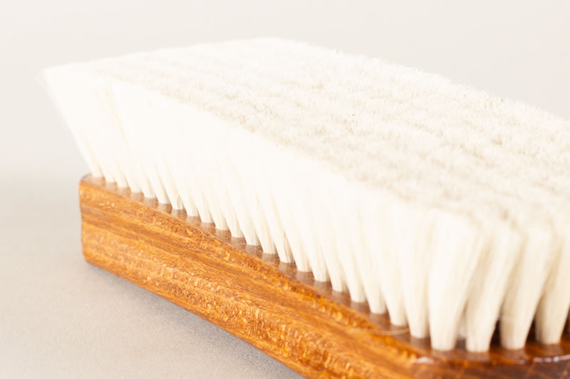 De borstel met geitenhaar wordt voornamelijk gebruikt voor afwerking en is ideaal voor het afstoffen van je schoenen aan het begin of eind van de dag. Ook is deze borstel zeer geschikt voor behandeling van de meer delicatere exotische leersoorten. De borstel is stevig genoeg om zand en stof te verwijderen, maar zacht genoeg om de textuur van de glans met rust te laten. Geit en yak haar word ook veel gebruikt voor kledingborstels. Zo voorkom je dat de stof gaat pillen en pluizen.