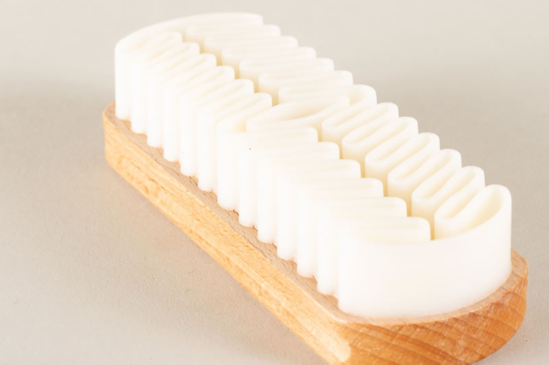De synthetische schoonmaakborstel is vanwege de stevige synthetische haartjes geschikt voor het grovere schoonmaakwerk van sneakers, suède en nubuck schoenen. Een synthetische borstel word voornamelijk gebruikt om hardnekkige vlekken en schoenpoets van de schoen te verwijderen. Een extra voordeel van een syntetische borstel is dat hij sneller droogt waardoor je minder omkijken hebt naar het reinigen van de borstel na gebruik.