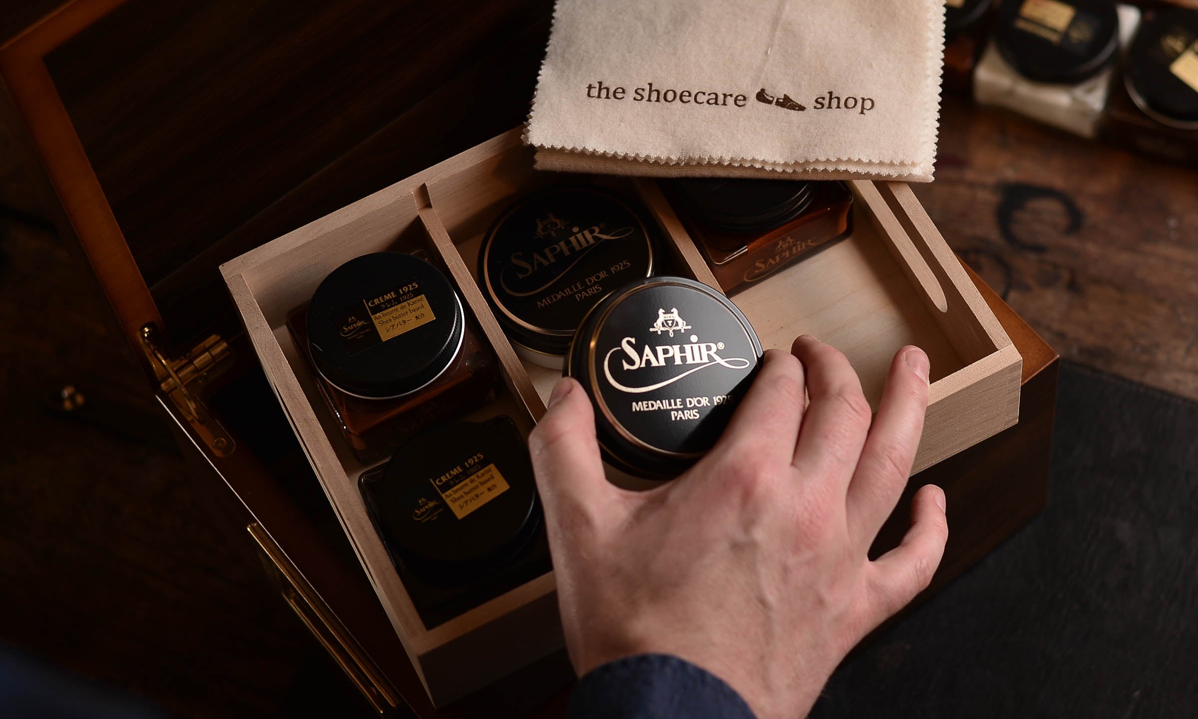 - Hoe je het geverfde leer voedt en beschermt met producten zoals Saphir Médaille d'Or Renovateur en Pommadier crème.