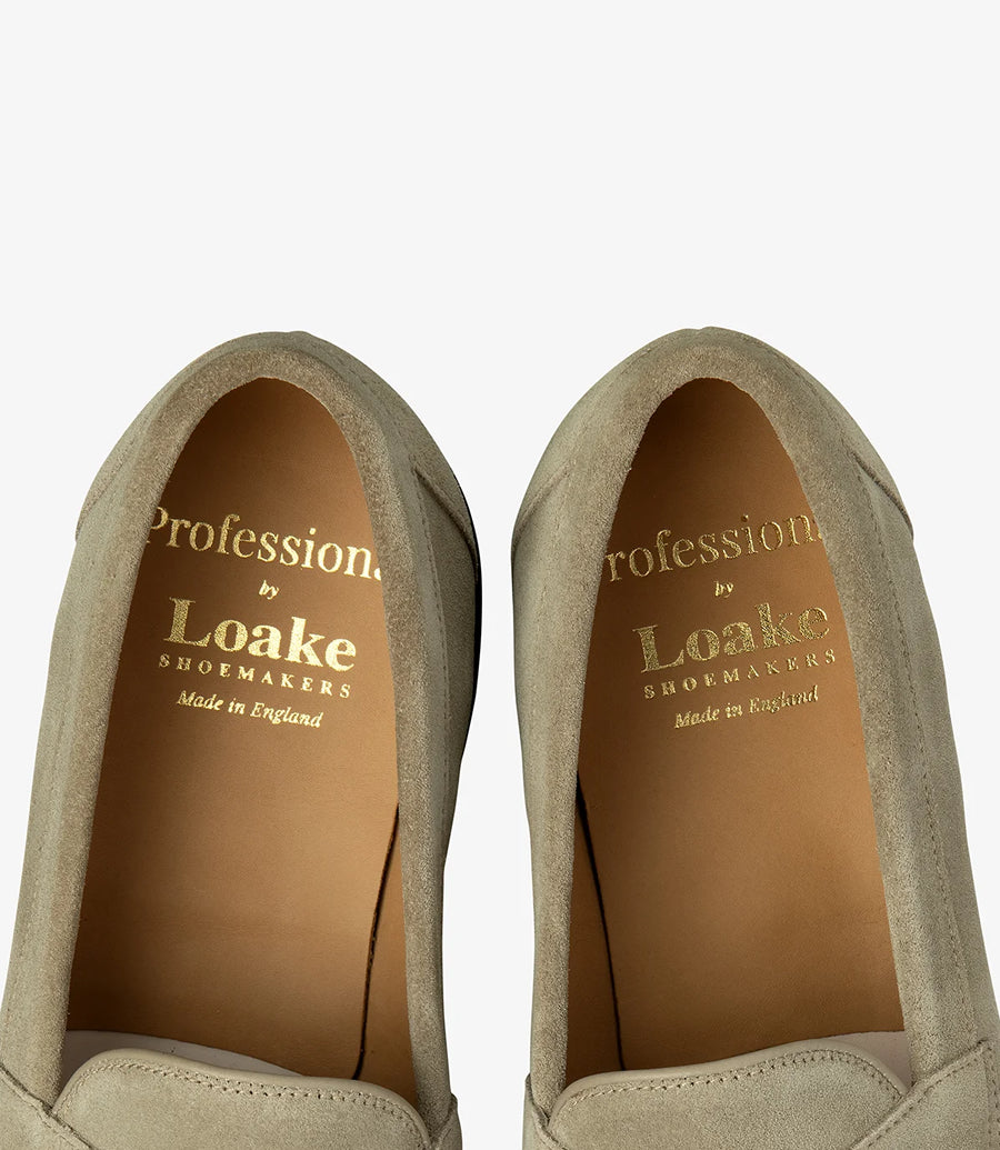 Loake suède penny loafer in sand kleur